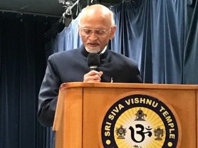 When we help the people in Oklahoma affected by the tornado or help the people in New Jersey and New York affected by the storm Sandy or feed the people suffering from hunger in Africa it is a service to God. It is through these services we can unite the various generations, communities, countries, Religions, and faith groups. We see God in every living being. As our Guru Dayanadha Saraswathi says “It is not that there is one God, it is that there is only God everywhere. If we take that approach and serve each other lot of the problems in the world can be solved and there will be eternal peace and Prosperity and bliss. Hence service to the needy is the Real Bridge among the various communities, countries and various religions and faith groups. I would like to conclude by saying that it is not only essential to build this bridge of service but also essential to maintain it forever.”